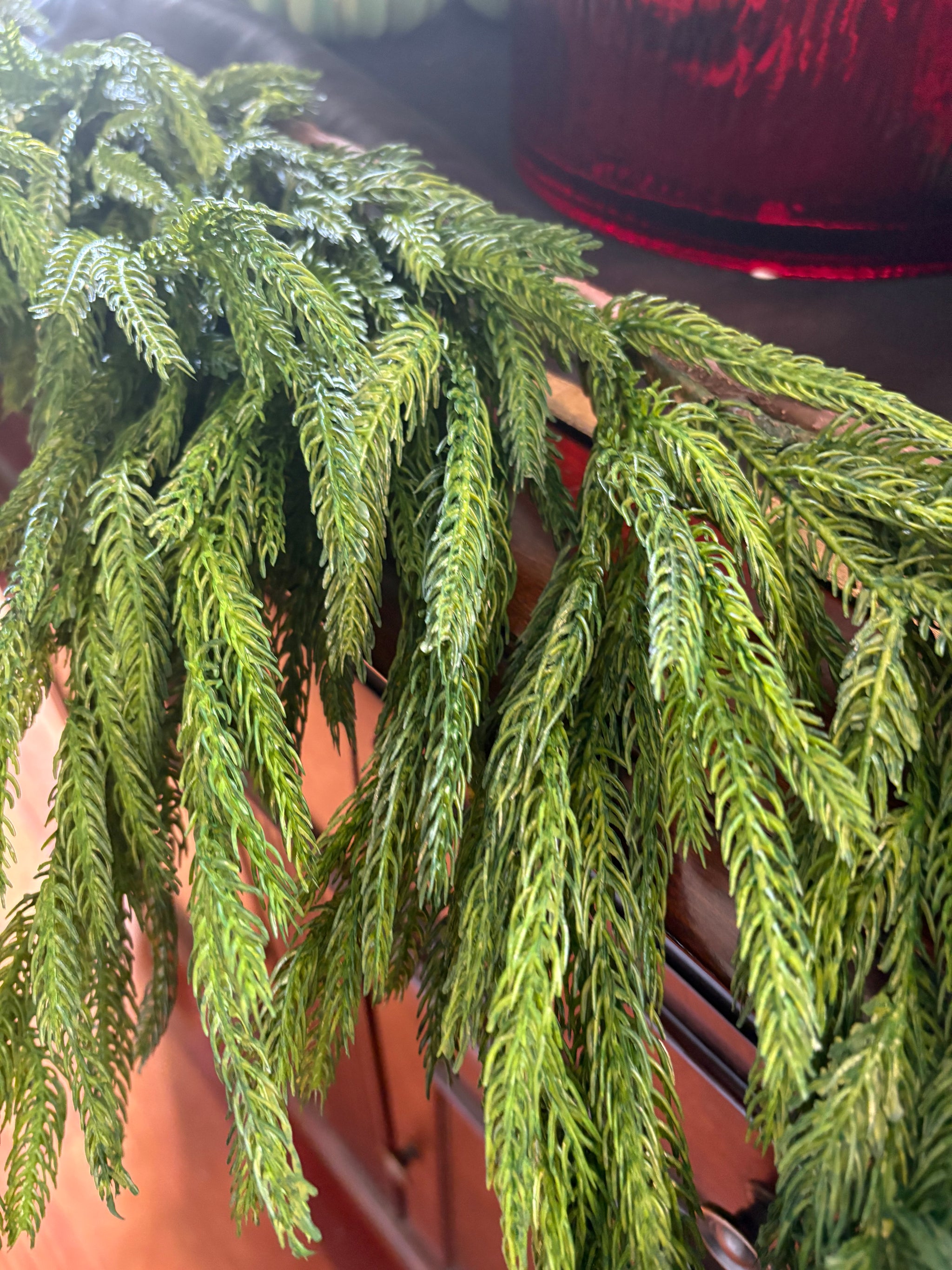 Grace your home with the timeless beauty of our Fresh Touch Norfolk Pine Garland - so realistic, you'll want to check twice that it's not freshly cut. Its lush, natural-looking branches drape effortlessly along mantles, banisters, or doorways, adding elegant greenery to your holiday decor. Perfect as is or as the foundation for a magnificient tablescape, this garland brings a touch of refined, everlasting charm to your seasonal styling.