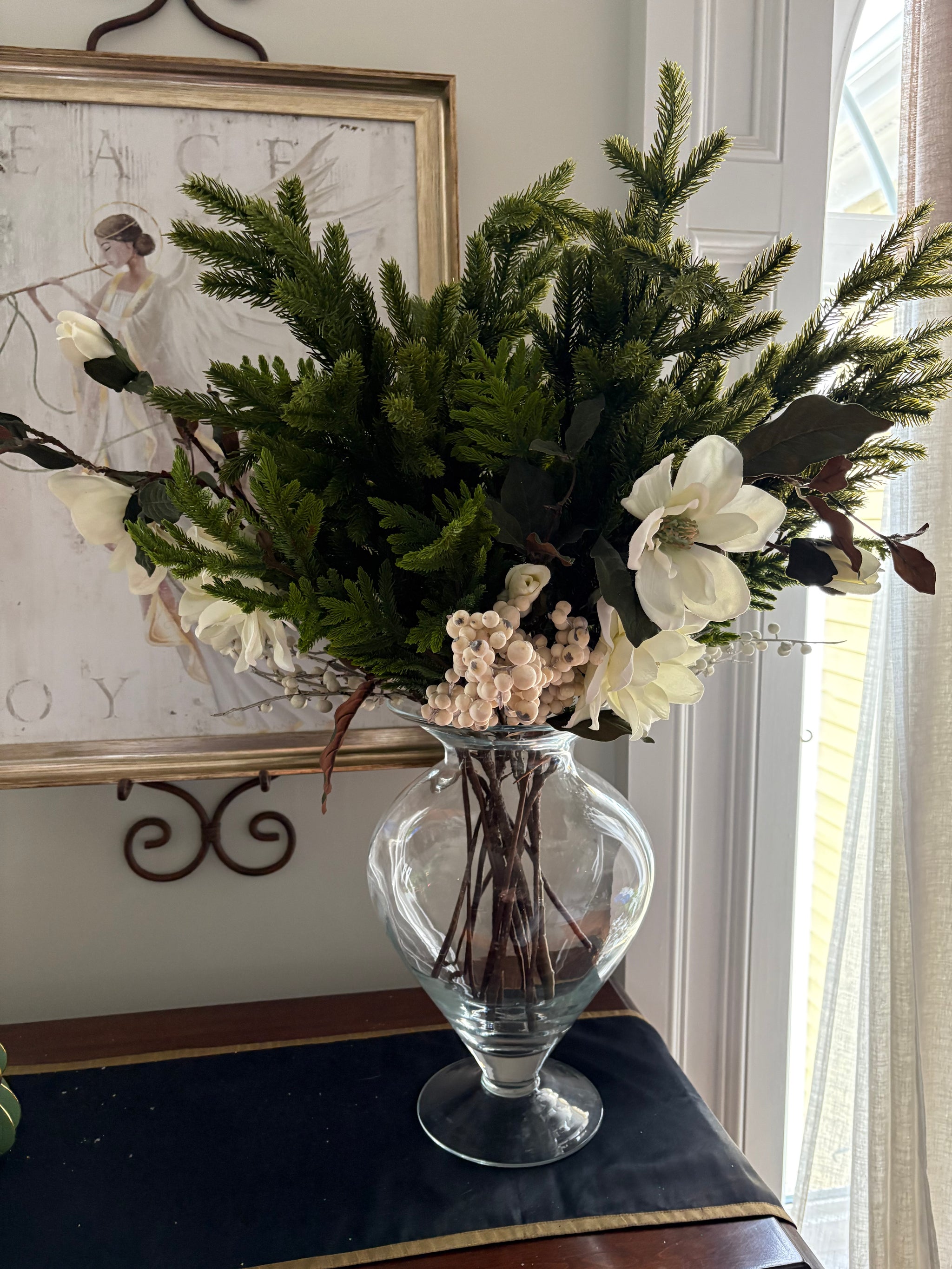 Picture shows the Spruce Spray in a winter floral arrangement. Flowers, other greenery, and berries sold separately.