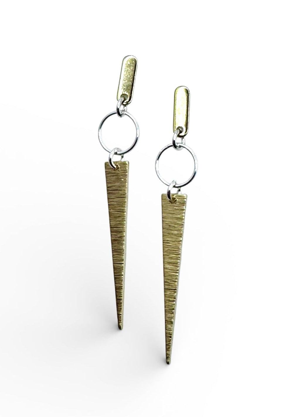 Delicate 14k gold-plated studs meet sterling silver in these feather-light, 2 tone beauties. Meadow is the perfect everyday pair that won't weigh you down. Sleek V shape brushed textured finding paired with a silver ring make them sophisticated yet just playful enough to make you smile every time you catch your reflection. Effortless elegance that feels as good as it looks.