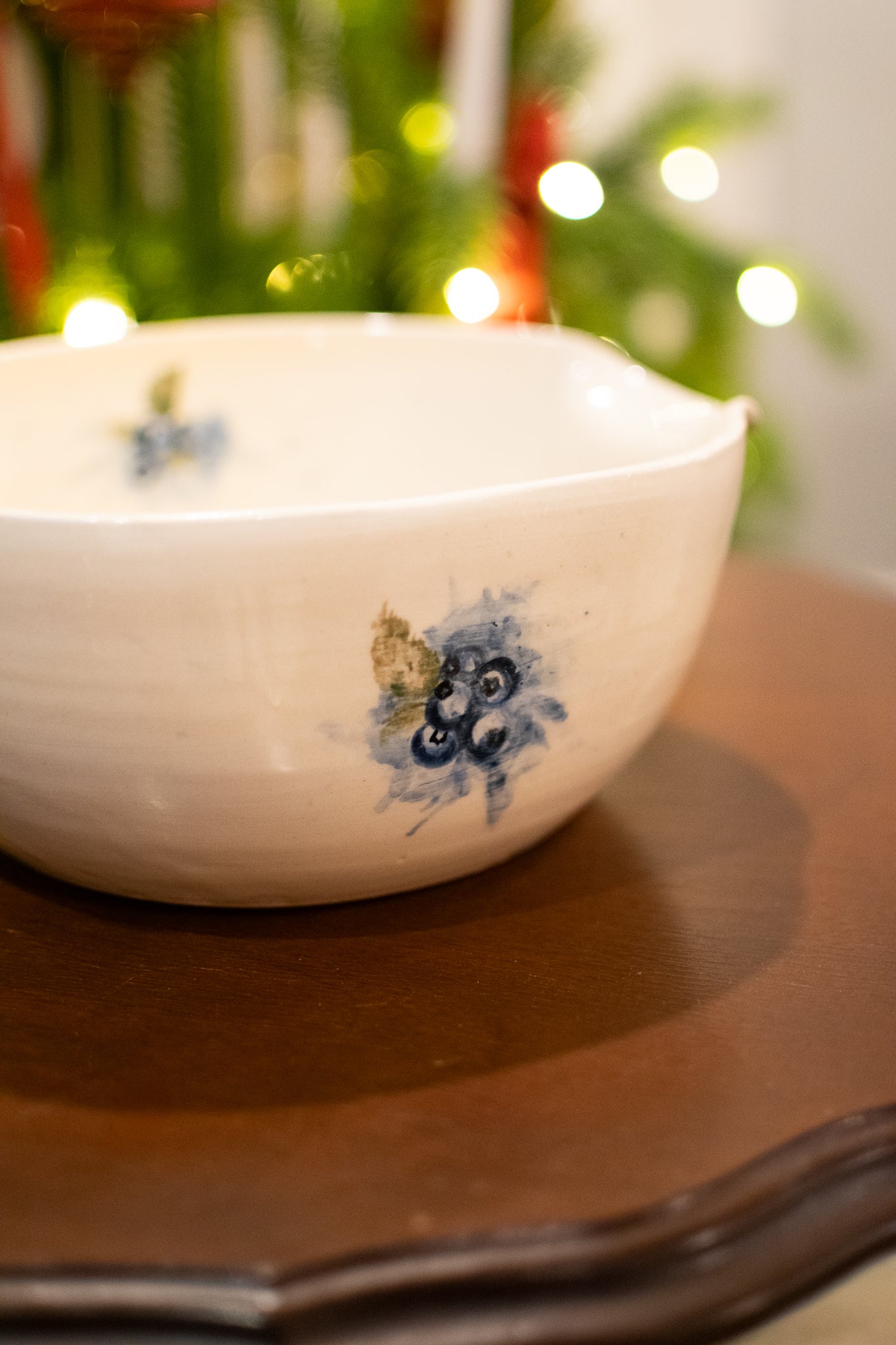 Bring a taste of summer’s bounty to your table with this hand-painted, high-sided casserole baker, adorned with plump blueberries and leafy green sprigs. Its taller profile makes it ideal for bubbling cobblers, deep bakes, or your favourite festive sides. Whether used as a serving piece or an oven-to-table hero, this vessel adds rustic charm to every gathering. Painted with a moody indigo-toned blueberry sprig both inside and out, it's a quietly elegant piece that celebrates the everyday magic of handmade craftsmanship.