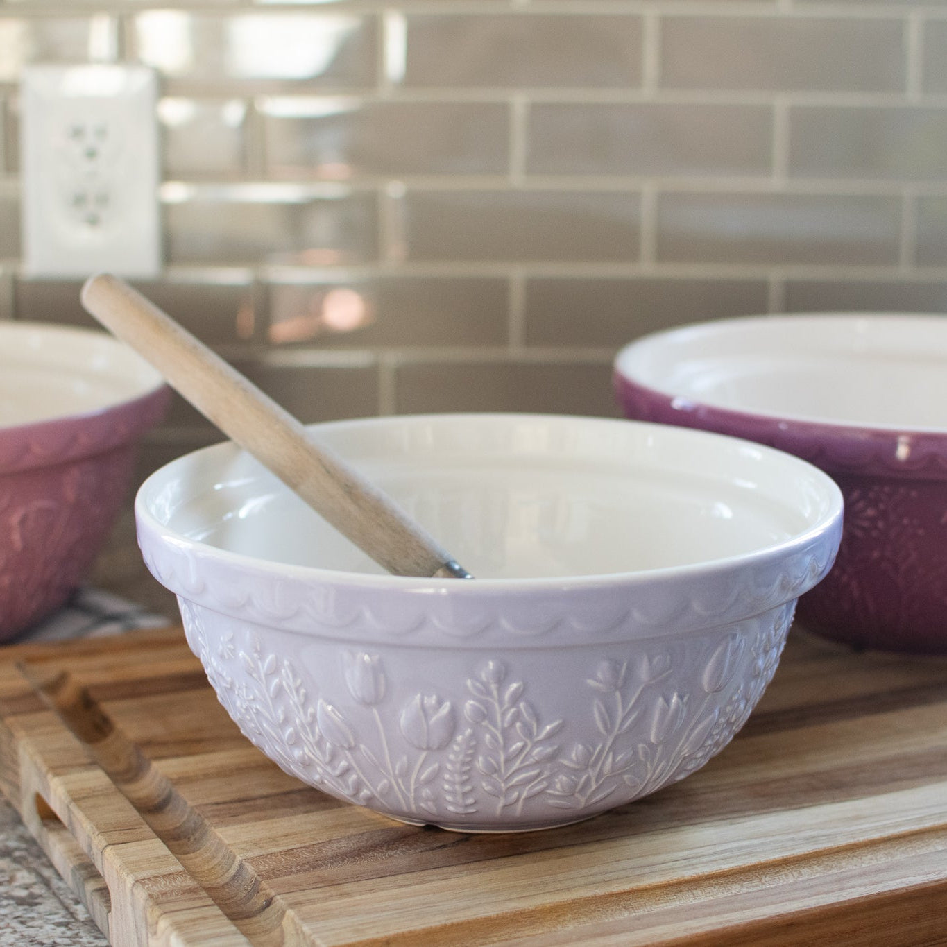 The Mason Cash In the Meadow collection is intricately embossed with delicate florals and foliage, with a beautiful colour palette. A perfect addition to any kitchen.